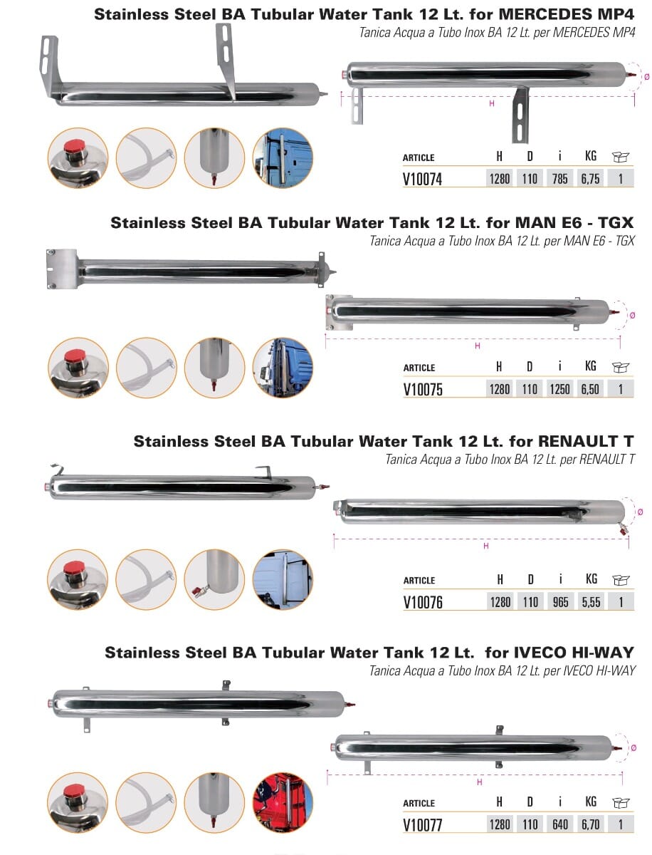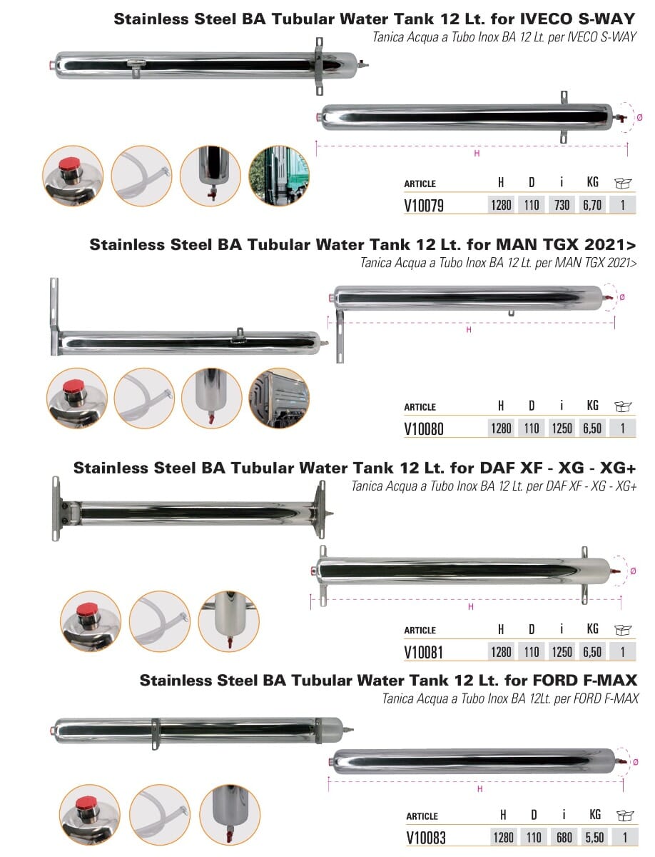 Perfetta per i trattori industriali, la tanica a tubo in acciaio inox è particolarmente indicata per il trasporto di acqua potabile o per uso igienico a bordo dei camion. La sua costruzione in acciaio inox la rende inossidabile, facile da pulire e resistente alla corrosione, assicurando la massima igiene e sicurezza, la sua forma particolarmente compatta è perfetta per i trattori industriali dove lo spazio è molto limitato.